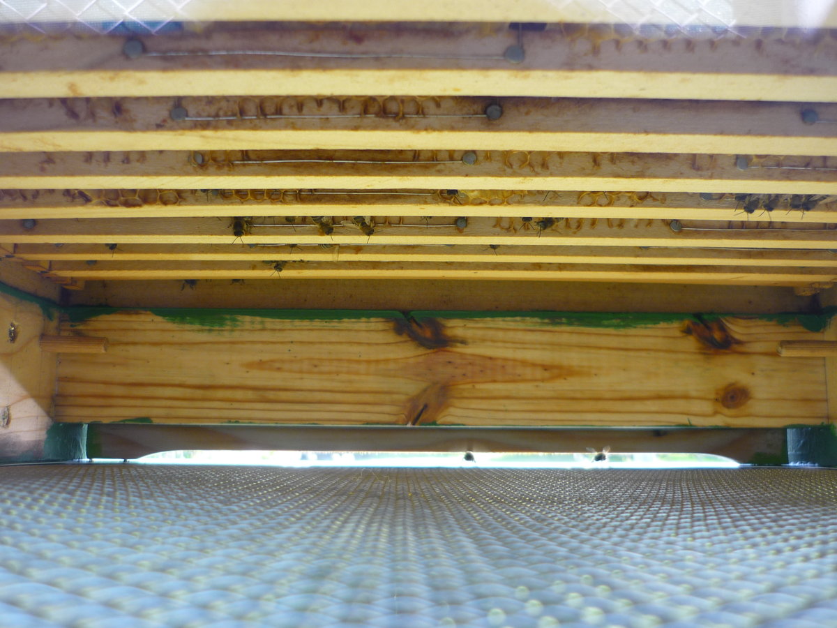 Oddělek jsme se strýcem společně usadili do předem připraveného úlu na zahradě. Včely by bylo možné nasypat přímo do úlu mezi rámky, ale podle strýce je hezčí podívaná, když včely do úlu napochodují samy.