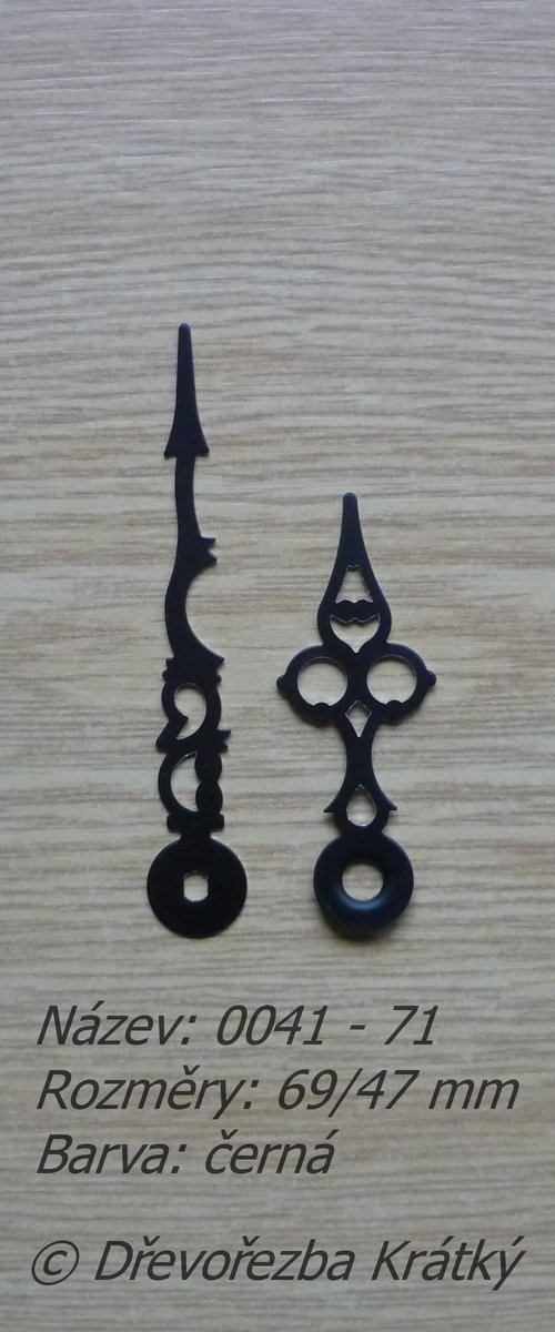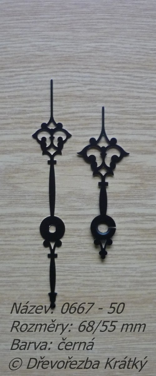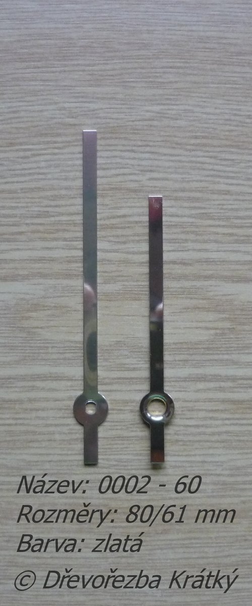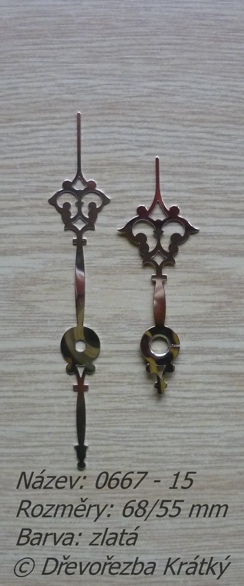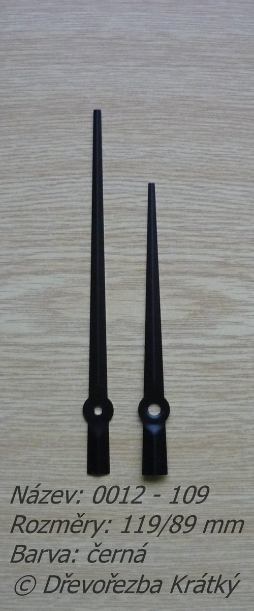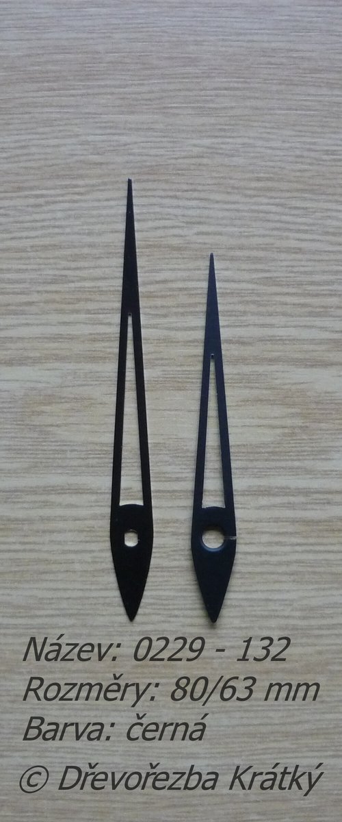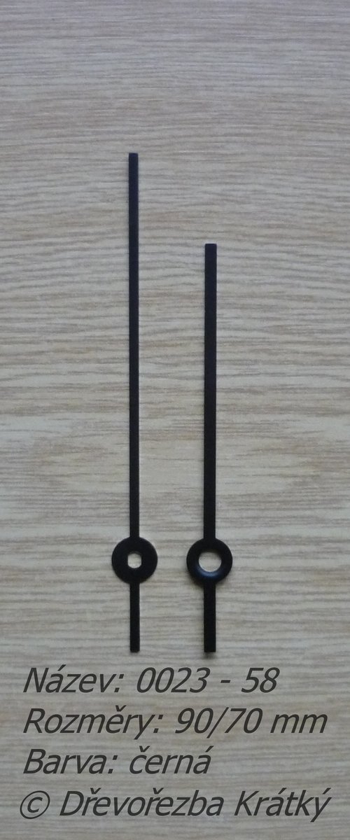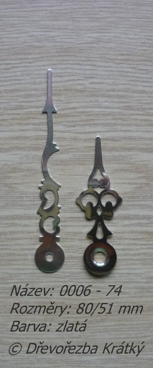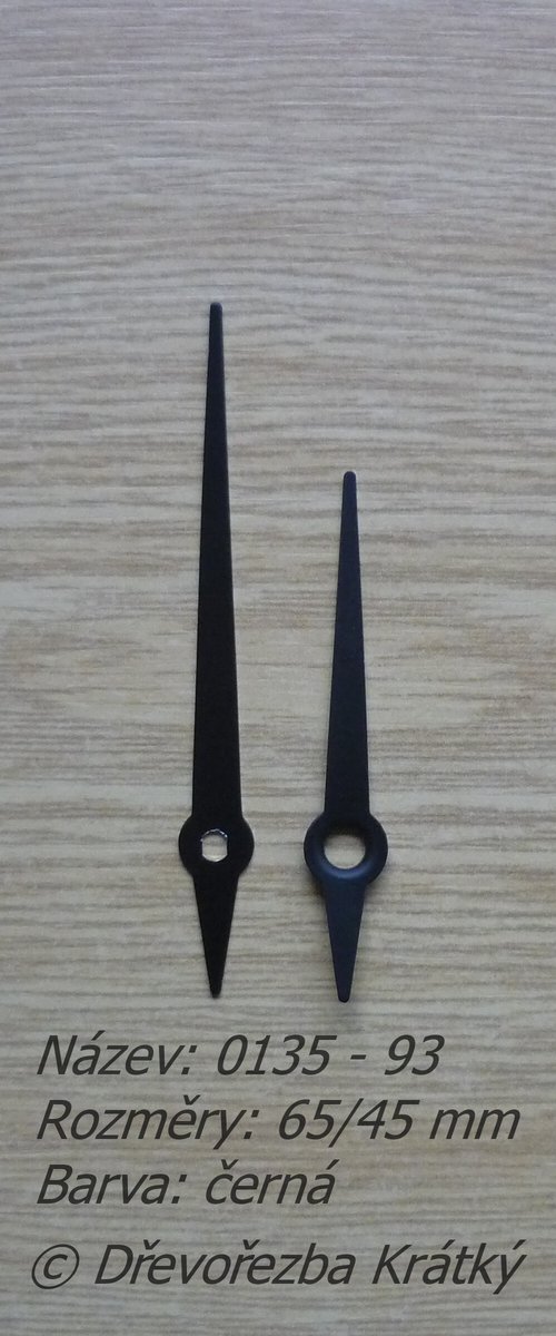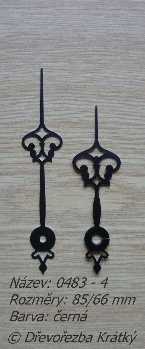 Hodinové ručičky jsou v barvách bílá, černá, zlatá. Rozměry jsou dány ve formátu "a/b", kdy "a" je délka minutové ručičky, "b" je délka hodinové ručičky, od středu otvoru až na jejich konec v milimetrech. Od velikosti ručiček se odvíjí velikost ciferníku hodin. Při objednávce uvádějte prosím název ručiček a jejich barvu.