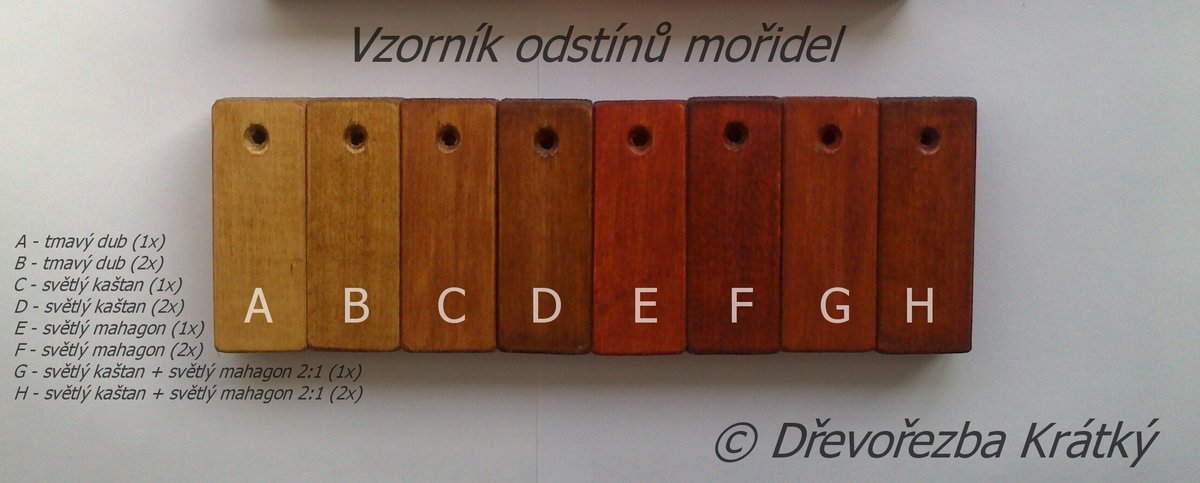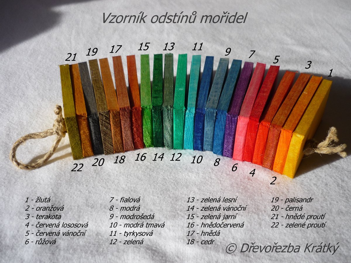 Nabízejí se vzorníky vodových a lihových mořidel, ze kterých vhodnou volbou barevného odstínu můžete doladit svůj interiér k dokonalosti. Dále vzorníky hodinových ciferníků a ručiček, které vytvářejí jedinečnost každých hodin.